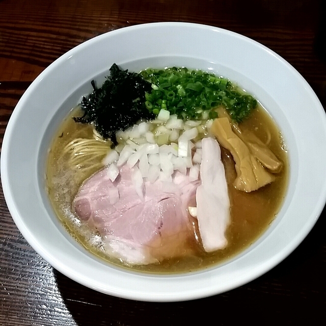 ⚫芳醇煮干そば醤油 780円 スープは、煮干しがきいているが、 アッサリ系の味。 麺は、細麺ストレート。 ややかためで、かみごたえあり。 トッピングには、やわらかチャーシュー。 その他、ネギ、のり、メンマなど。