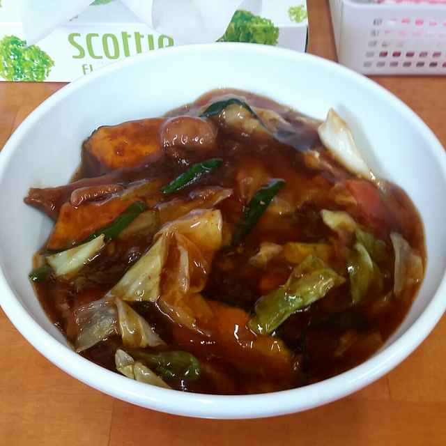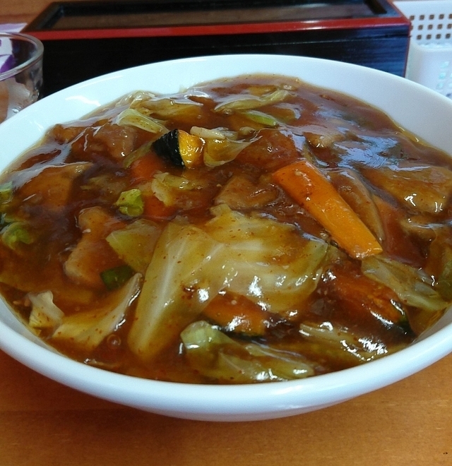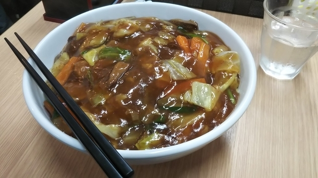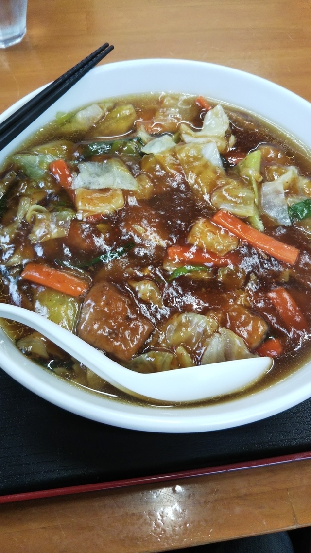 前から気になっていて現場から近いのもあってやっと行けました。 太麺に甘辛の餡が絡んで美味しかったです♪