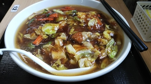 笠間でスタミナラーメンが食べれるお店。 しょう油ラーメンやチャーハンなんかもあります。 店内はカウンター8席ほどと4人がけテーブルが2つで乳幼児連れには不向きです。 事前に食券購入タイプ。 野菜は大きめカットでカボチャは素揚げしてあるのか、ほっこり美味しいです。 対してレバーは小さめで臭みはないものの食べごたえが残念な感じ。 餡はオーダー入ってから作るのでタイミングによっては時間が少しかかる時も。