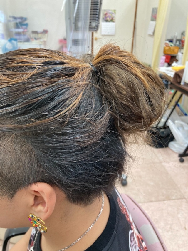 シールエクステ 髪を長くして、後で結んでいる風に仕上げたものです。