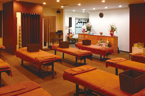 広い店内に施術台が並んでいます