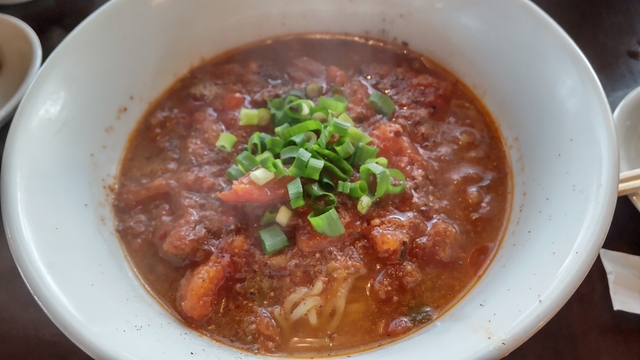 トマトをたっぷり使ったラーメン。 中華というよりはイタリアンな感じなのでスープまで完食してしまいます。 写真はトマト坦々麺。 辛さは3段階ありますが、旨味のある辛さなので 辛い物好きの方は、一番辛い物で大丈夫だと思います。 デザートは200円の杏仁豆腐。 カラメルや黒蜜等、ソースが選べます。 杏仁豆腐というよりはプリンみたいな感じですが 食後のシメとしては、ぴったりです。 メニュー全種類制覇したい、おすすめの店です。