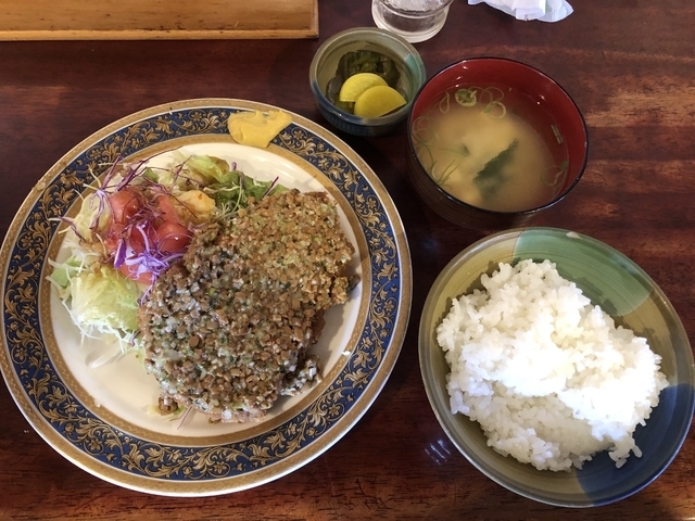地元で昔からあるのは知っていましたが、一度も訪れたこと無く、ちょうど昼少し前で空いていたので初訪問。確か納豆かつが名物だった記憶があり、迷わず納豆かつをオーダー。昭和52年の開店から人気メニューとのこと。お値段は2019.9.21現在で1200円+ご飯セット300円。単に納豆が乗っているだけと思いきや、完全にカツのソースとして機能すべく様々な工夫が凝らされていて絶品!そして驚いたのは、たっぷり乗った納豆がこぼれ落ちないように、カツに包丁を入れて一口サイズにしていたこと。食べやすさは美味しさの大切な要素であることをわかっているんですね〜。素晴らしい!リピート確定!!