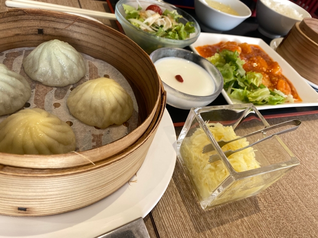 ランチは混みます。 週替わりランチA、Bを美味しく いただきました。 小籠包の柚子、のり風味を追加でいただきました。