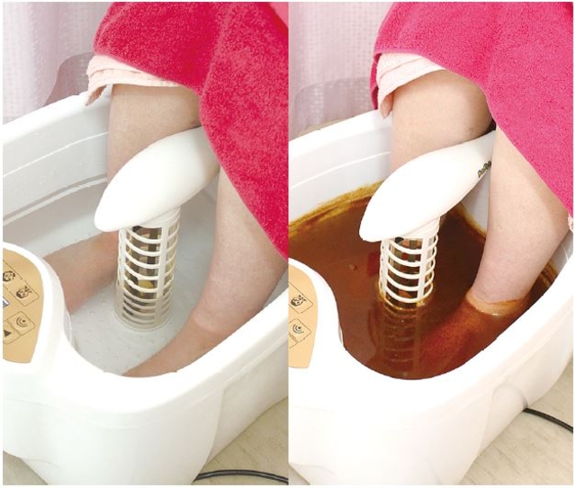 足裏から毒素を排出させる今人気の足湯。 デトックス機能で有害物質が排出され、液体の色が茶色に変色! 代謝の改善や免疫力の回復にもおススメ! 自分の足からどれほどの毒素が出るか…お試しください!