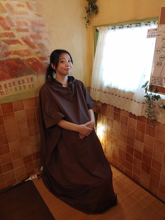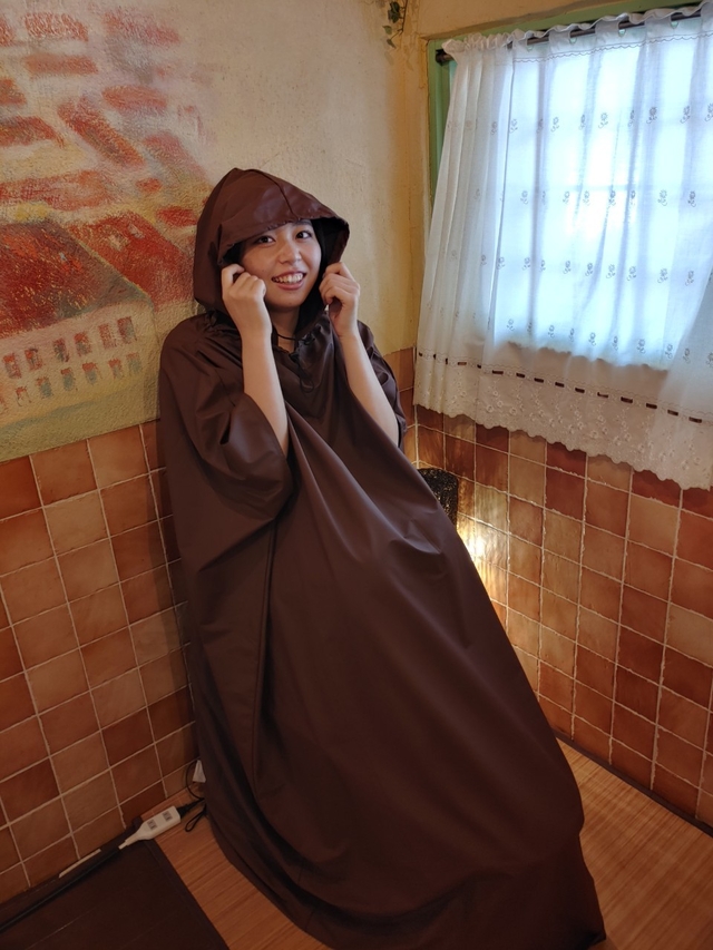 【顔までスポッとケープを被って蒸しサウナにするのも良し】