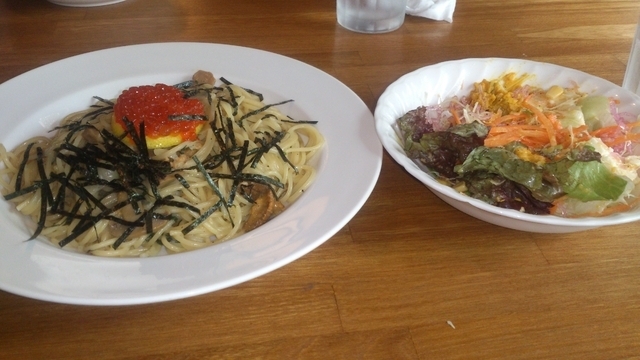 いつもは赤塚や京成店に行くが たまには東海店に行こうと思い来店。こちらの店は10時30からの営業。私が頼んだのは うにいくらパスタ☆セットで付いてくる サラダは カボチャペーストとキャベツやレタス、チーズのサラダ☆パスタの茹で加減は丁度良い☆いくらの塩気がとっても美味しい☆うには 生で添えてくれると良かったかも☆パスタの熱さで うにが固くりすぎていた。店内は ガラスや見えない部分に 埃などがあったのが気になる、、。新しい店じゃないから しょうがないのかな、、、。