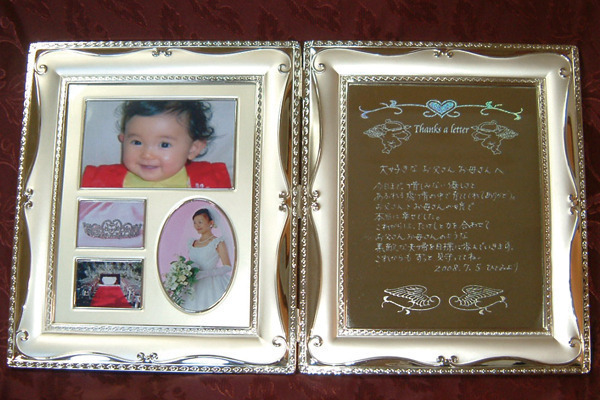 ご両親へ手書きのお手紙を彫った贈り物!思い出の写真を添えて…。