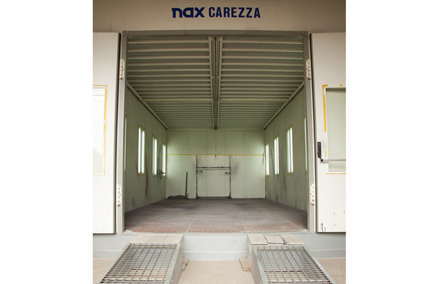 湿気や温度調節可能な塗装ブース。ゴミやホコリをシャットアウトし外部への臭いもれを防止、環境にも配慮。