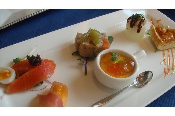 前菜の盛り合せは、コースの始まりにふさわしく、季節感を意識した見た目にも鮮やかな仕上がり