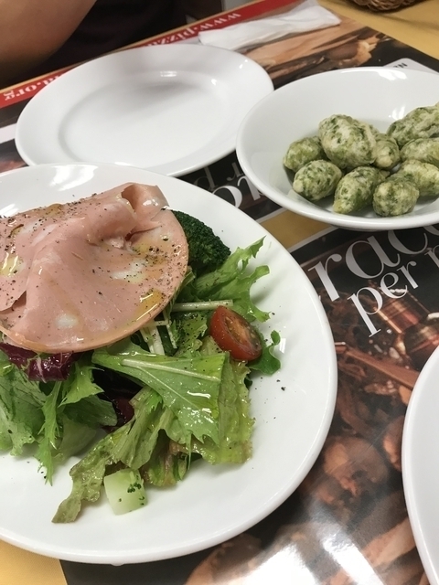 ランチタイムに行きました。駐車場はいっぱいだったので広い駐車場(スーパー?)に停めました。ランチは1,400円でピザ・サラダかデザート・ドリンクが付いてきてお得でした。