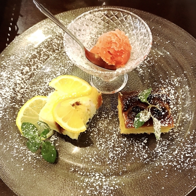 レストランでコースをオーダーしてみました。1品1品丁寧にお料理の説明をしてくれて、とても美味しかったです。デザートも夏にぴったりのさっぱりしたお味でした。