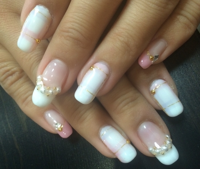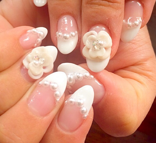 今月のネイルは白フレンチにパールを乗せて、3Dのお花をあしらってもらいました*\(^o^)/*手を眺めるだけでテンション上がる♩ 早いし安いし、いつもありがとうございます!