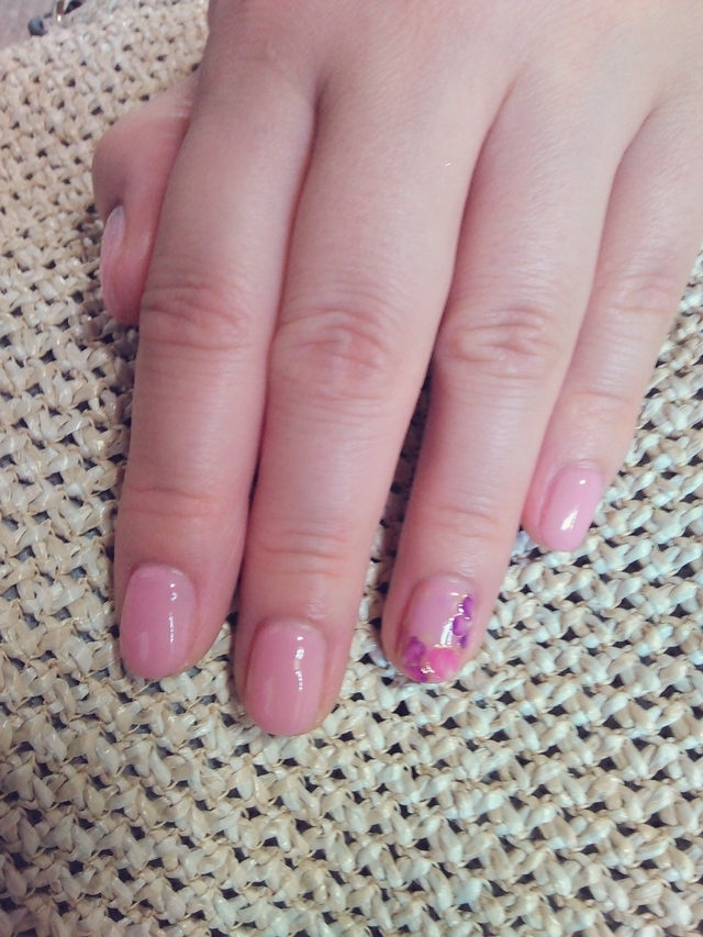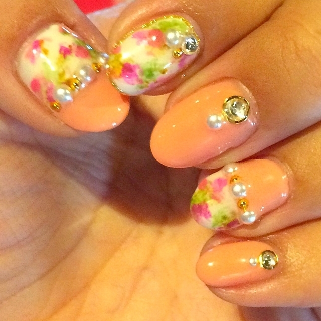 今月は可愛い甘め系で!サンプルにあったもので色は好きなオレンジ系ピンクにしてもらいました。周りからの評判も上々です!!