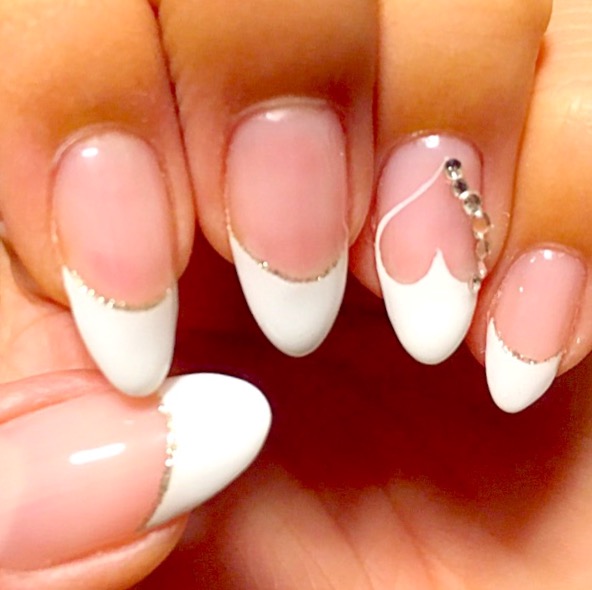 今月のネイル♪シンプルに白フレンチで1本ずつハートにアレンジ! 派手すぎなくて、本当お気に入り^^