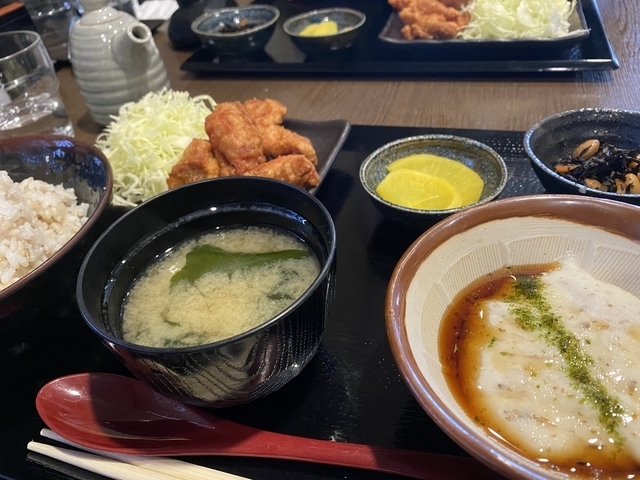 唐揚げランチを選びました。 いい色のサイズのちょうど良い唐揚げを仕切のあるテーブル座敷の席で静かにいただくことができました。