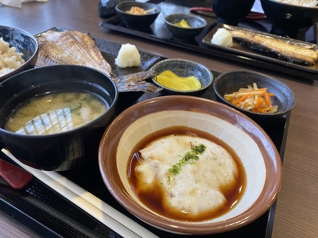 また連れと平日昼に訪れ、日替り御膳「ミックスフライ御膳(自然薯付き)」の麦飯大盛にホットコーヒーを注文しました。主皿はメンチカツ1個と鶏ささみ大葉巻きのフライ1個。これに千切りキャベツとマヨネーズ・和辛子が添えられており、中濃ソースをかけていただきました。これにいつもの摺った自然薯の小擂鉢、ひじきと大豆の煮物の小鉢、ワカメの味噌汁、タクアンが付いています。鶏ささみ大葉巻きが美味しいのと、粘り強い自然薯が相変わらず美味しいです。また食後はホットコーヒーで寛ぎました。