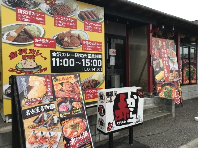 こちらは以前は夜営業のみだったようですが、時節柄か昼営業やテイクアウトも始めたようで、ランチで初めて伺いました。鍋物や焼き物中心のお店だけに、卓子の真ん中には網を載せたガスコンロがドン!と載っています。ただ名物「赤から鍋」のランチは2名以上で注文可なので、一人客としてはゴーゴーカレー監修・金沢カレー研究所メニューのみのよう。暑い夏には適切な選択です。金沢カレーはルウを長時間煮込むためドロッとして黒く濃厚なカレーで、付け合せは千切りキャベツ、ステンレス皿に盛られ、フォークまたは先割れスプーンで食べる特徴があるとのこと(カレールウとライスの黄金比は1:2とか)。チキンカツカレー(中)を注文しました(ライス量は小200g/中300g/大400g)。暫く待ってステンレス皿到来。なるほどかなり黒っぽいカレールウがチキンカツの上までかけられています。カツは約15cm長x約10cm幅で7片にカット済み。傍らに千切りキャベツの山が添えられています。卓子上に置いてある赤い福神漬を適量加えて食すと、そこそこ辛いながらも甘みもあって美味しい。あっという間に完食でした。次回はいろいろな揚げ物が載るボリュームMAXの全部のせカレーを試してみたいです。