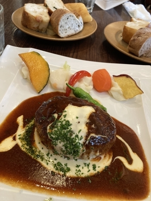 人気No.1のハンバーグをランチでいただきました!食べ放題のパンがいつも違っていつもお腹いっぱい楽しませてもらってます!