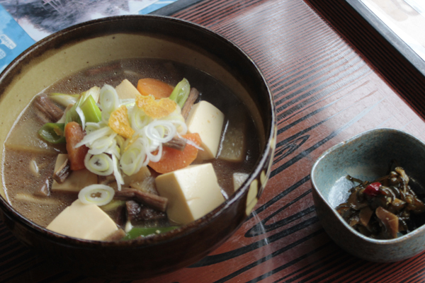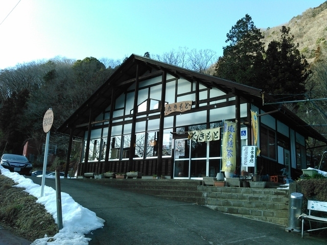 御食事処『たきもと』は袋田の滝の仲見世通りの入口付近、通りから少しはずれたところにお店があります。袋田の滝見物の後にぜひお立ち寄りください。当店で使う野菜は全て自分の畑で育てた自家製!おすすめは「奥久慈しゃもゴボウ巻きそば」と「けんちん」。たっぷり入った野菜をお楽しみください。冬季には、大子の麹で作った「甘酒」も販売致します。