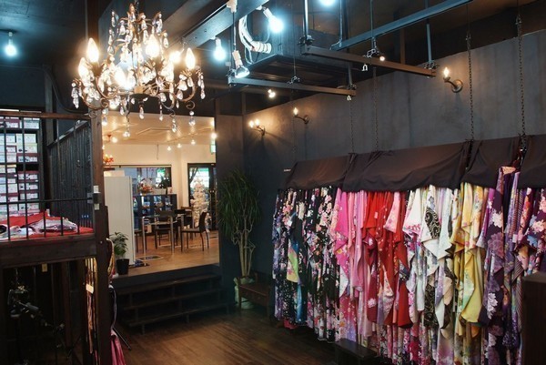 小野写真館プロデュースの二十歳振袖館Az。従来の呉服屋さんとは違うおしゃれな店内。靴を脱がずにお洋服屋さんのような感覚で、お気軽にお着物選びが出来ます。