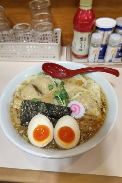 ずっと気になっていたのですが、やっと初訪問です。木曜日の17時40分頃入店で、先客1組、その後20分位で3組入店。ワンタン麺大盛味付卵をいただきました。 他の方々のクチコミのとおり具がぎっしりのワンタンは食べ応え抜群です。スープは下館ラーメンを彷彿させる鶏ベースの感じで、美味しく完食させていただきました。 でも、コロナやウクライナによる小麦などの高騰の影響からか、全体的に50円程度値上げされたようです。 辛いのが好きなので、次はカレーラーメンや辛味噌を試してみたいなぁ!また、行きたいお店です。