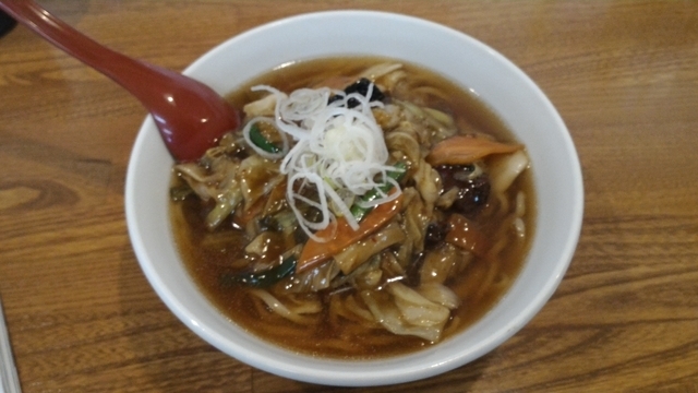 スタミナラーメンを頂きました。カボチャ大きめ。レバーは、竜田。正統派の味ですね。甘辛餡が溶け込んだスープ、大好きです。