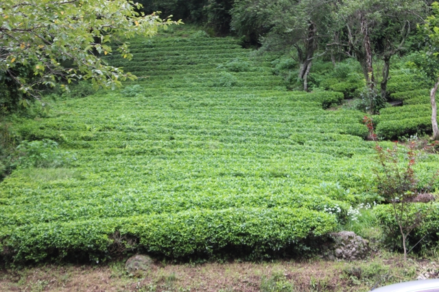 お店駐車場裏のお茶畑。一番茶は5月に摘み始めます。これは大子の中でも随一の早さ!