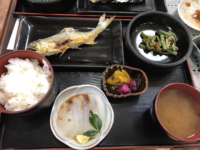 鮎定食をいただきました!鮎の塩焼き、山菜、さしみこんにゃく。この土地ならではものを食べることができました。とても美味しかったです。スタッフの方のおもてなし、サービスもよかったです。