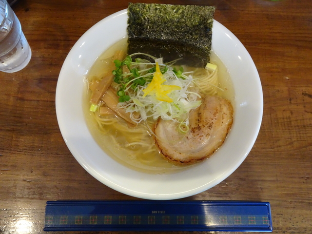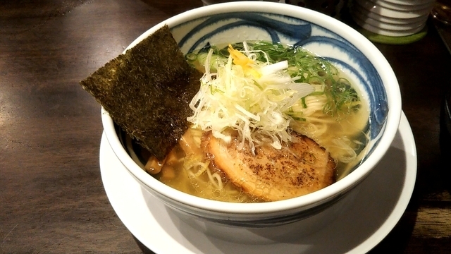 初訪問で看板メニューの濃厚鶏塩そば+味玉を食しました。店内の能書きによれば、羅臼昆布/干し椎茸/ニンニク/野菜ペーストと厳選2種の塩を使って塩ダレを作り、これと鶏白湯とを合わせ、仕上げに黒マー油を加えてニンニク風味を出しているとか。中細麺の上には叉焼1枚、海苔1枚、メンマ、白髪ネギ、ブロッコリー、赤/黄パプリカ片が載っていました。スープはとろみを感じるこってりさが良いですが、塩ダレの分量によるのか、旨み甘みよりもやや塩辛さが感じられました。もう少し素材の旨み甘みを前面に出せるのでは?とも思いましたが、敢えて言えばの希望で、充分に美味しいです。次は鶏清湯の黄金塩そばを試したいと思います。