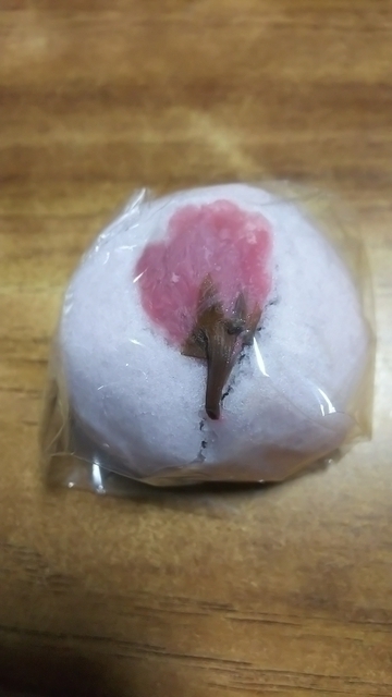 石岡市に用事があった家族が、買ってきてくれました。桜の塩漬けが乗っているとても美味しい和菓子です。寒い日が続いていますが、おやつにお茶と一緒に頂くと、甘さと桜の塩加減が良く、寒さも和らぎほっとした気持ちになれました。