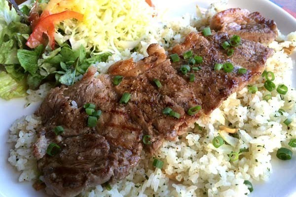 写真は サーロインステーキ ガーリックピラフ(1,080円)。肉・魚ランチやコース料理もございます。