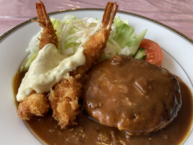 地元で愛される老舗洋食屋『ボンジュール』。常陸牛のステーキをフレンチスタイルで、かつリーズナブルに楽しめると人気です。常陸牛のサーロイン(300g 3900円)は、脂身をカリカリに焼き上げ、仕上げはテーブルの前でフランベ。余熱を考慮し芯温が80℃くらいのロゼ色で仕上げます。トッピングされたメンテルバターの風味と、醤油ベースの自家製和風ソースが魅力の逸品!ぜひご賞味ください。