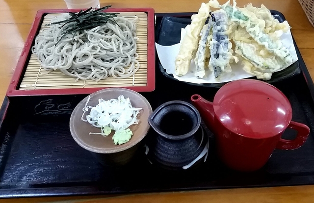 ⬛天ざるそば900万3.8 そばは、常陸秋そば使用です。 まずは何もつけずに、そばをいただく。 香りもよく、美味しいそばです。 天ぷらは、カリカリで、素材の味が引き立つ揚げかた。 なす、しいたけ、サツマイモ、カボチャ、ししとう、海老など、野菜中心。