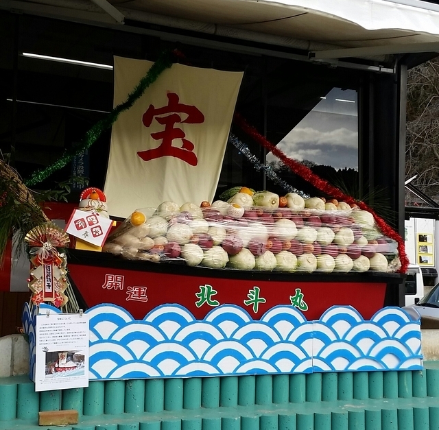 ◆道の駅みわ 開運北斗丸展示中。 地元の野菜を出荷出品している 農家の方たちの手作りです。 いろいろなご利益がありそうです。