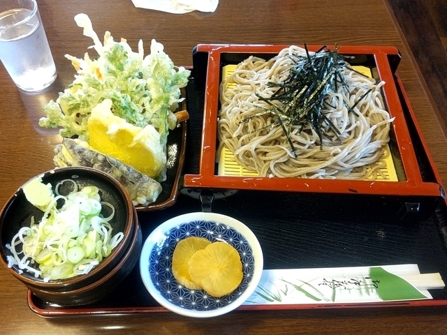 ◆野菜天ざるそば1,280円 常陸秋そば使用の安定の美味しいそば この美味しさがもっと広まってほしいものです 地元野菜を使った天ぷらは揚げたてでサクサク。さらにボリュームあり ぜひ食べていただきたい品々です