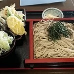 久々に行って来ました。いつも30分以上待つので早めに並ぼうと出かけたら、一番でした。 お目当ての天ざる蕎麦を注文! 天ぷらも揚げたてサク!サク!でとても美味しかったです。 おいなりさん普通のと、お赤飯やおこわのおいなりさんのセットになってたのを買って帰ってきましたが、これまたとても美味しかったです(^_^)v