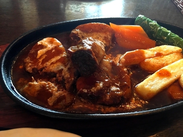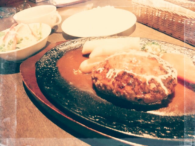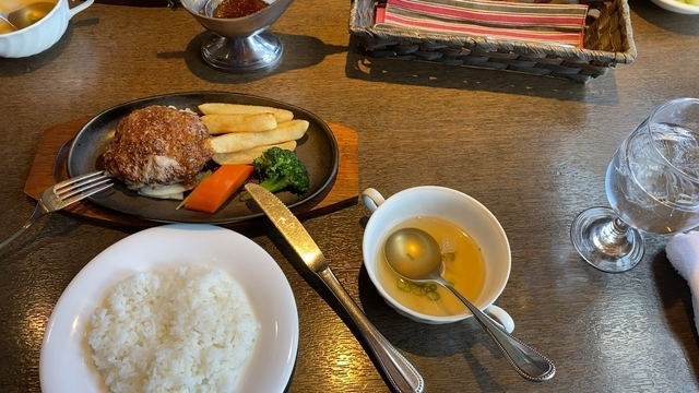 今日は和風ハンバーグにしました 常陸牛を使っていてとっても美味しく頂きました ランチタイムはスープサラダ付き
