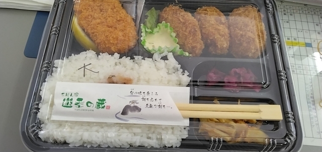 また新型コロナが増えてきたため、お弁当をテイクアウトすることに。 今回は牡蠣フライ&カニクリームコロッケ弁当。 牡蠣フライは大きくジューシー。 カニクリームコロッケは、クリームとろとろで美味い。 ごちそうさまでした。