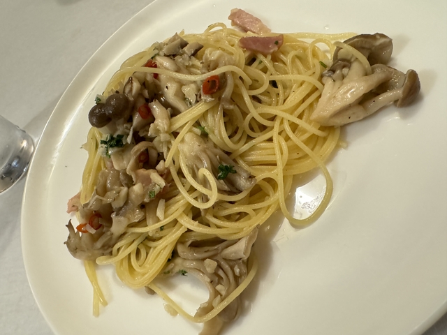 以前グリル系をいただきおいしかったので今回はパスタコースをチョイス!きのこのペペロンチーノは塩気が効いていてニンニクもたっぷりでおいしい!