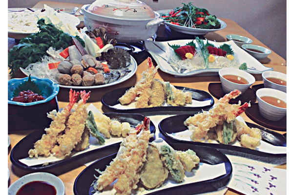 宴会予約は4名様~30名様。写真は2,500円コース。天ぷらの他5品、デザート付き。