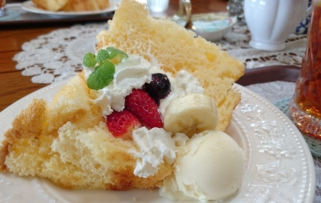 土曜日の午後 友達と四人で 初めておじゃましました。 笠間ーカフェ で検索したら、トップに出てきたからです(笑) 店内に入るまでのお庭には 薔薇の花やイチゴが(*^^*) 店内は お庭を見て想像したとおりの かわいいインテリアや雑貨が♪ 私たちは 紅茶セットをいただきました。 紅茶2種類、デザート3種類の中から好きなのを選べます。 私は、ピーチティとシフォンケーキを。 ボリュームたっぷりのシフォンケーキが登場(笑) ワガママを言わせていただくと、生クリームもっと欲しいのと、フルーツソースなんか かかってると凄く嬉しいかな~と。ケーキに対してトッピング?が少なく感じました。(個人的な意見ですが(^^;) 落ち着けるお店でした(*^^*) 表にも何席かあったので、風を感じながらの お茶もいいかもです♪