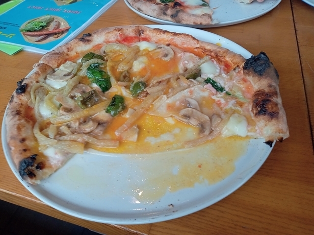 何年かぶりに、本物らしい、ピザを、食べました❗とても、美味しい❗生地も、具も、焼き加減も、とにかく旨い!又山越えて行きます‼️