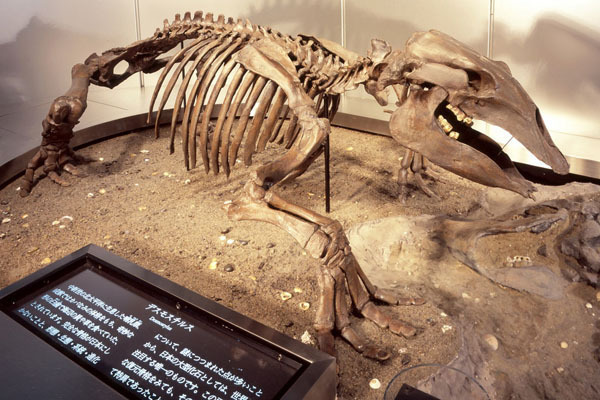 新第三紀に北太平洋の沿岸地域に生息していたホ乳類デスモスチルスの化石(レプリカ)