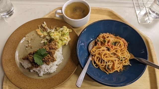 2023/4/30に訪問厚生棟別館のレストランでディナーを頂きました。キーマカレーと燻製サーモンのトマトソースパスタ☆玉子とワカメのスープはお代り自由☆ レストランの方も親切でした。食後は敷地内の池の前で休憩。レストランには地物野菜も販売しておりました次回はランチで訪れたいです☆