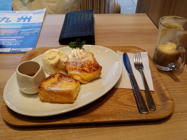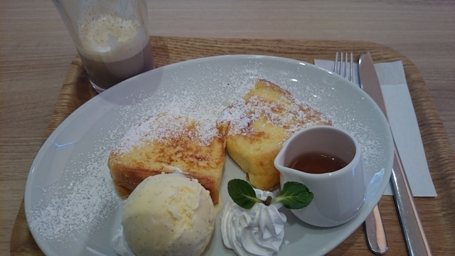 ランパラのフレンチトースト頂きました。提供に15分程かかりますが、ドリンクを先に持ってきてくれるので飲んで待っていれば直ぐでした。しっかりと染みたフレンチトーストに粉糖がかかっていてそれ自体は甘さ控えめ。添えてあるシロップ、クリーム、大きめのバニラアイスを色々組み合わせ楽しみながら甘さ調整。珈琲のお代わりを頂き後味がスッキリ。美味しく頂きました。軽めのランチになる量でした。