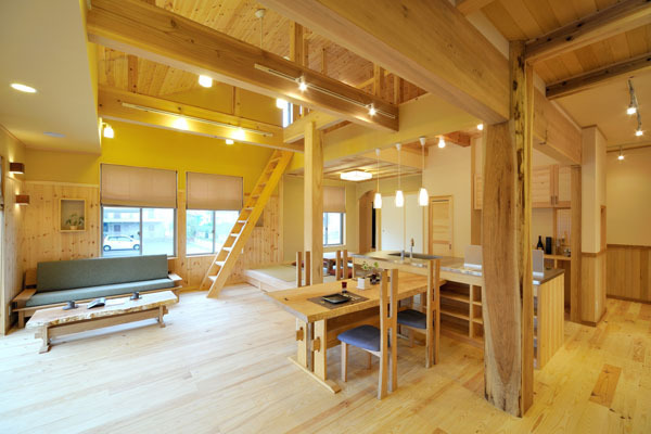 ショールームでは無垢材の空間の心地よさを体感できます。