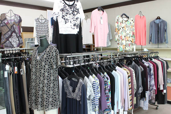 光の射し込む明るい店内には日常的に着られるファッションから多く取り揃えており、生活日常品や下着などもございます。元々が呉服屋で和装の小物もご用意がございますので、冠婚葬祭でちょっと買い足したいものがあるときにも当店をご利用ください。地域の小・中学校の学生服も取り扱っており、ジャージや水着もございます。