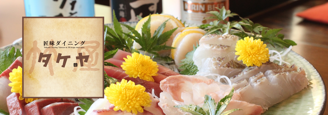 古河駅東口のすぐ近く、徒歩30秒の場所にあるタケヤ!お得な食べ放題&飲み放題が人気です!お食事もお話も思う存分に楽しめます♪またフードメニューは50種類以上!ドリンクメニューも50種類以上、越後寒梅、八海山、久保田などの日本酒も飲み放題とバラエティ豊かなメニューをご用意しております。食べるも飲むも好きなだけ!!広々とした店内でお楽しみ下さい。