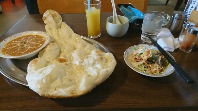 2017.12.19(火)11:55訪問。 先客一組、後客四組。 諸事情で入院していたが、この日は退院。 病院のバスで古河駅まで来て、自宅近くまでのコミュニティバスまでかなりあるので、初訪問のこちらへ。 キーマカレーセット中辛をオーダーし、サラダやスープ、ドリンクが来た後、カレーとナンが到着。 近隣のカレー屋さんのナンより、少しデカイ感じ。 キーマカレーも、挽き肉がしっかり入ってて、食べごたえ充分。 中辛でも少し辛く感じましたから、最初は普通で十分かも。 ごちそうさまでした。